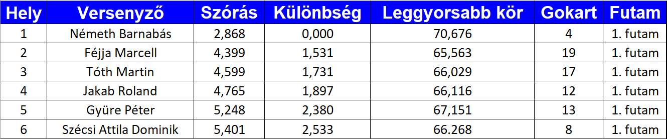 2 futam került megrendezésre, az eredményeket az alábbi táblázatokban találjátok: